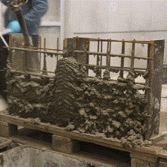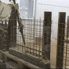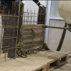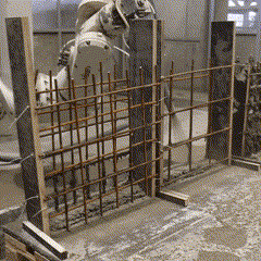 Fabrication has been validated through prototype fabrication at various scales, where robotic printing and reinforcement processes had been tested in coordination between MESH AG, COBOD International, and RUPP Gebäudedruck.
